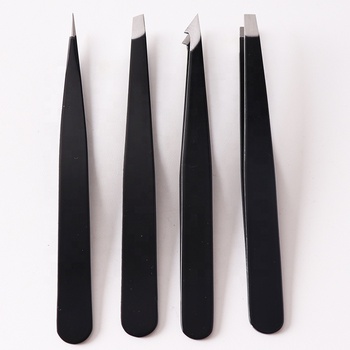 Juego de pinzas para cejas, accesorio negro con logotipo personalizado, desplumadora de pelo, pinzas cosméticas con bolsa de PU, 4 Uds.