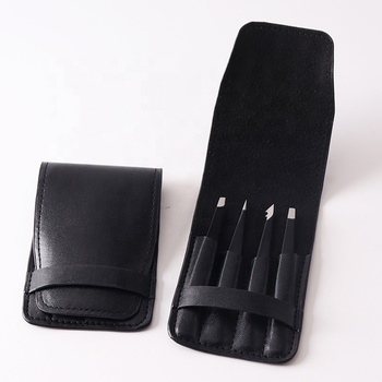 Juego de pinzas negras con bolsa de PU, venta al por mayor de fábrica, 4 Uds.